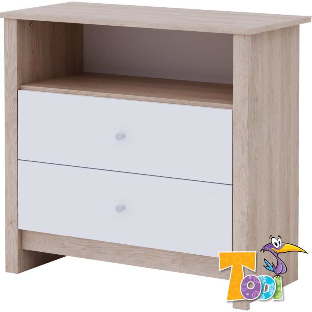 A Classic komód 2 zárt fiókkal és egy nyitott résszel rendelkezik, melyek kiválóan pakolhatóak, jól átláthatóak és remekül rendszerezhetőek. Majd 250 l-es űrtartalmú pelenkázó komód szinte mindent elrejt, amire gyermekének szüksége lehet pelenkázáshoz pl. krémek, popsitörlők. Opcionálisan vásárolható a komódhoz pelenkázó toldalék, ami kitűnő pelenkázó komóddá varázsolja ezt a terméket. A laminált bútorlapból készült alkatrészek élei 2 mm vastag Pvc-vel (un.: Abs) kerülnek élzárásra, melyek a hagyományos élfóliákhoz képest sokkal magasabb élettartamot biztosítanak. Lapra szerelve kerül becsomagolásra, az összeszerelési útmutatót mellékeljük, amivel könnyen összeszerelheti bútorát. A fiókok teljesen kihúzható, golyóscsapágyas fiókcsúszókkal vannak ellátva.