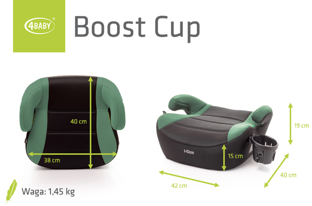 A Boost Cup i-Size ülésmagasító 125–150 cm közötti gyermekek számára készült. Könnyű, biztonságos és kényelmes megoldás, amely az R129 szabványnak megfelelően biztosítja a megfelelő ülésmagasságot és övvezetést. Hárompontos biztonsági övvel rögzíthető, így bármilyen autóban használható.